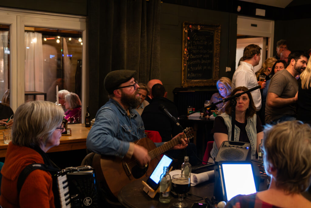 Onderweg stoppen we op een gezellige binnenlocatie waar een aantal muzikanten ons verrast op Ierse muziek en liederen.